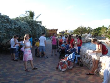 Gegen 13.00 Uhr verlassen wir das Sea-Aquarium, um gegen 18.00 Uhr zurück zu kommen. Dann hält nämlich Marco, der Cheftherapeut, einen Vortrag über die Delfintherapie im allgemeinen. Jarun ist erschöpft von seinem ersten Tag, hat aber mittags nicht geschlafen. Deswegen hat er schlechte Laune und verlässt nach einer halben Stunde mit dem Papa wieder den Vortrag.